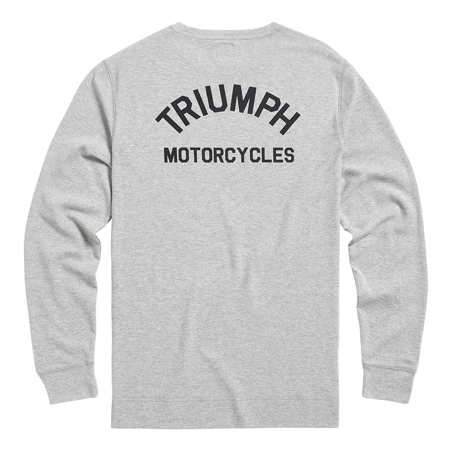 A long sleeve waffle texture cotton tee, with eye-catching arched Triumph Motorcycles print on the chest